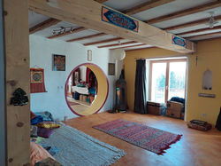 Apportée principalement par la terre crue (enduits, murs, cloisons), permettant un lissage des variations de température et un confort thermique stable. -